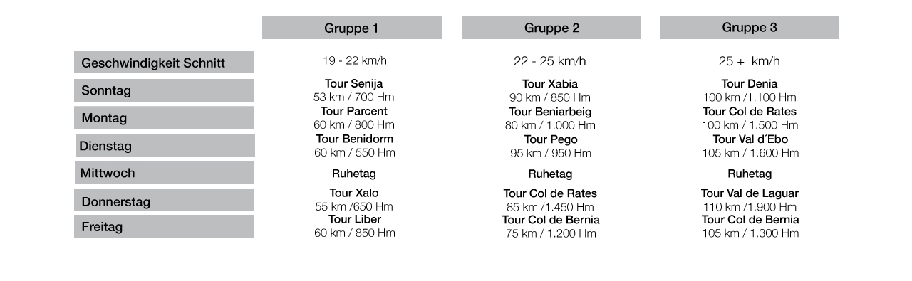 Dies bedeutet: lieber in einer Gruppe leicht und locker mitfahren, als jeden Tag am Limit zu sein.