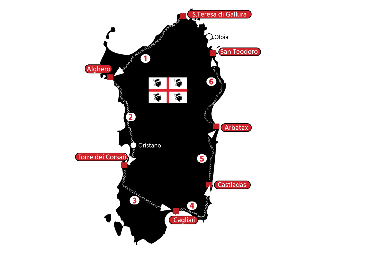 Die Strecke führt von der Hauptstadt Sardiniens, Cagliari entlang der herrlichen Küstenstraßen im Südosten zum Etappenziel Castiadas an der Costa Rei.